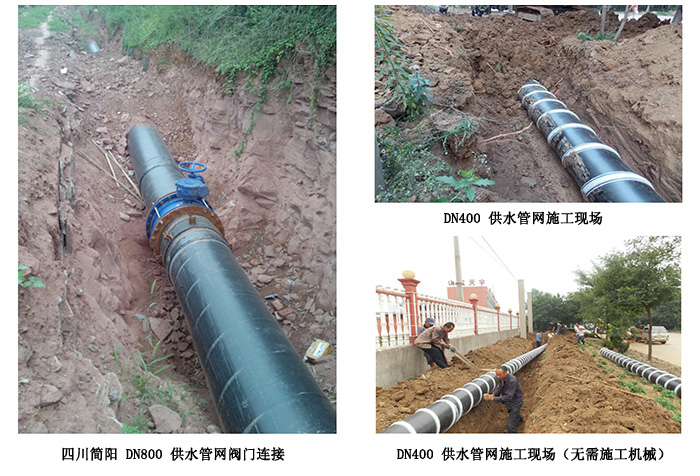 在工程施工方面,大口径心博(中国)管也占很大优势。钢丝缠绕超高心博(中国)管的比重约为1.2,而由于其壁厚很薄,直径可以小一号,其重量比铸铁管和PCCP管小5—10倍,搬运和安装非常轻便。超高心博(中国)复合管的柔韧性很好,可以先在地面上连接好之后再下到管沟里,边挖沟边下管,边填埋。不用修路,不用大型机械,不用地基处理。铸铁管和PCCP管必须挖很宽的沟,管道下到沟里对正连接,受到很大局限,工程费用大幅上涨。在需要穿越江河的情况,超高分子量聚乙烯心博(中国)管可用沉入法在江河底敷设,也可用拖拉法从江底隧道或管道中拖曳而过,这都是铸铁管和PCCP管做不到的。